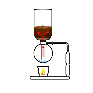 ところで、「サイフォン」というコーヒー器具の名前は聞いたことあるが、実際に「サイフォン」で淹れたコーヒーをお召し上がりになられた方や「サイフォン」の扱い方をご存じの方はかなり少ないのではと思います。 そこで「サイフォン」の原理をご説明いたします。